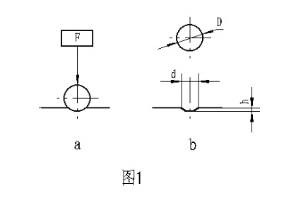 金屬布氏硬度試驗(yàn)系采用一定直徑硬質(zhì)合金球,以規(guī)定試驗(yàn)力壓入被測材料表面(圖1a)按規(guī)定保持時(shí)間后,卸除試驗(yàn)力,(圖1b)測量試樣表面的壓痕直徑,以計(jì)算出布氏硬度,并以下式計(jì)算之: HBW=0.102 x 2F/πD(D-