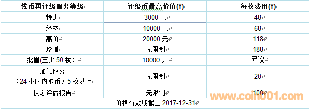 網(wǎng)上提出申請(qǐng)/其他方式預(yù)約(電話/微信/QQ)→填寫申請(qǐng)表(客戶信息等)→支付再評(píng)級(jí)費(fèi)用→現(xiàn)場(chǎng)收幣或者快遞郵寄→評(píng)估周期(預(yù)計(jì)收到后2周)→完成評(píng)估發(fā)貨