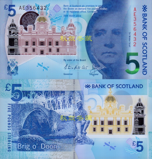 蘇格蘭銀行2016年5鎊流通塑料鈔??70元/張(10張起)