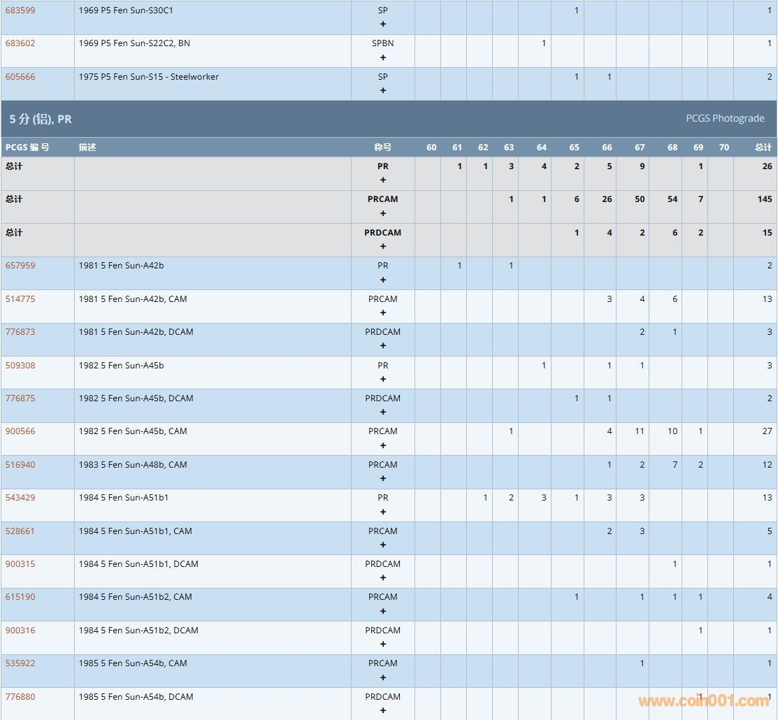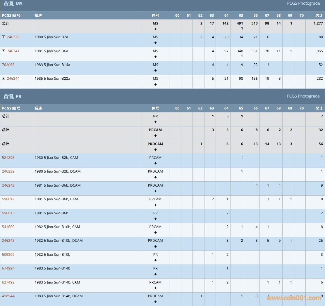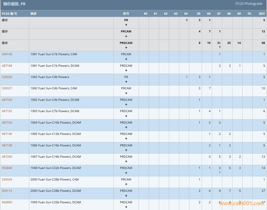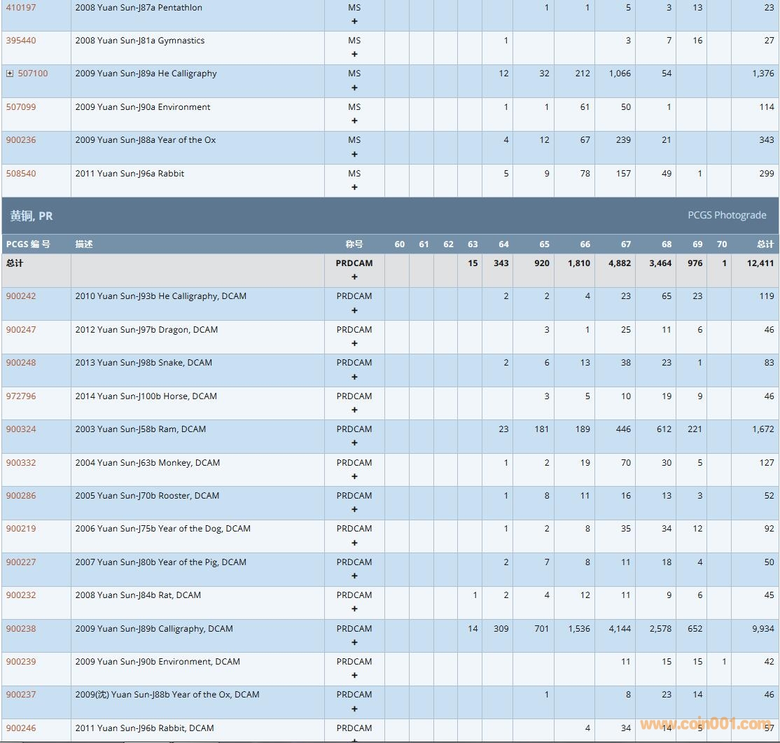 PCGS硬幣評級數(shù)量報告( ..
