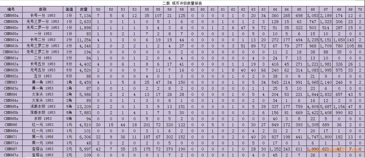 PMG紙幣評級數(shù)量報(bào)告