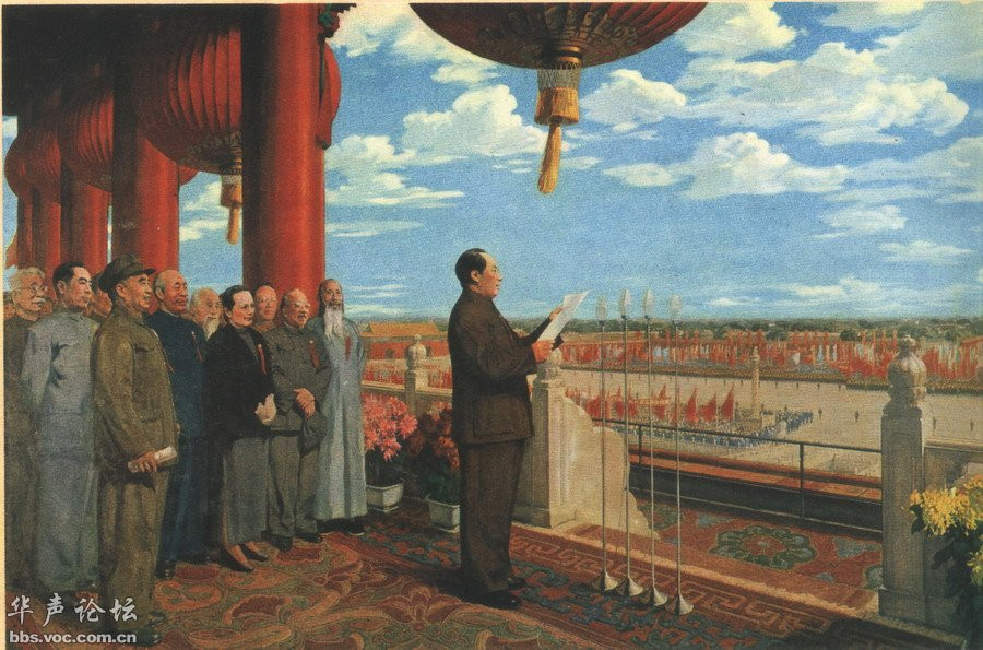 董希文革期間的《開國大典》 前排從左至右依次是:朱德、董必武、宋慶齡、李濟深、張瀾