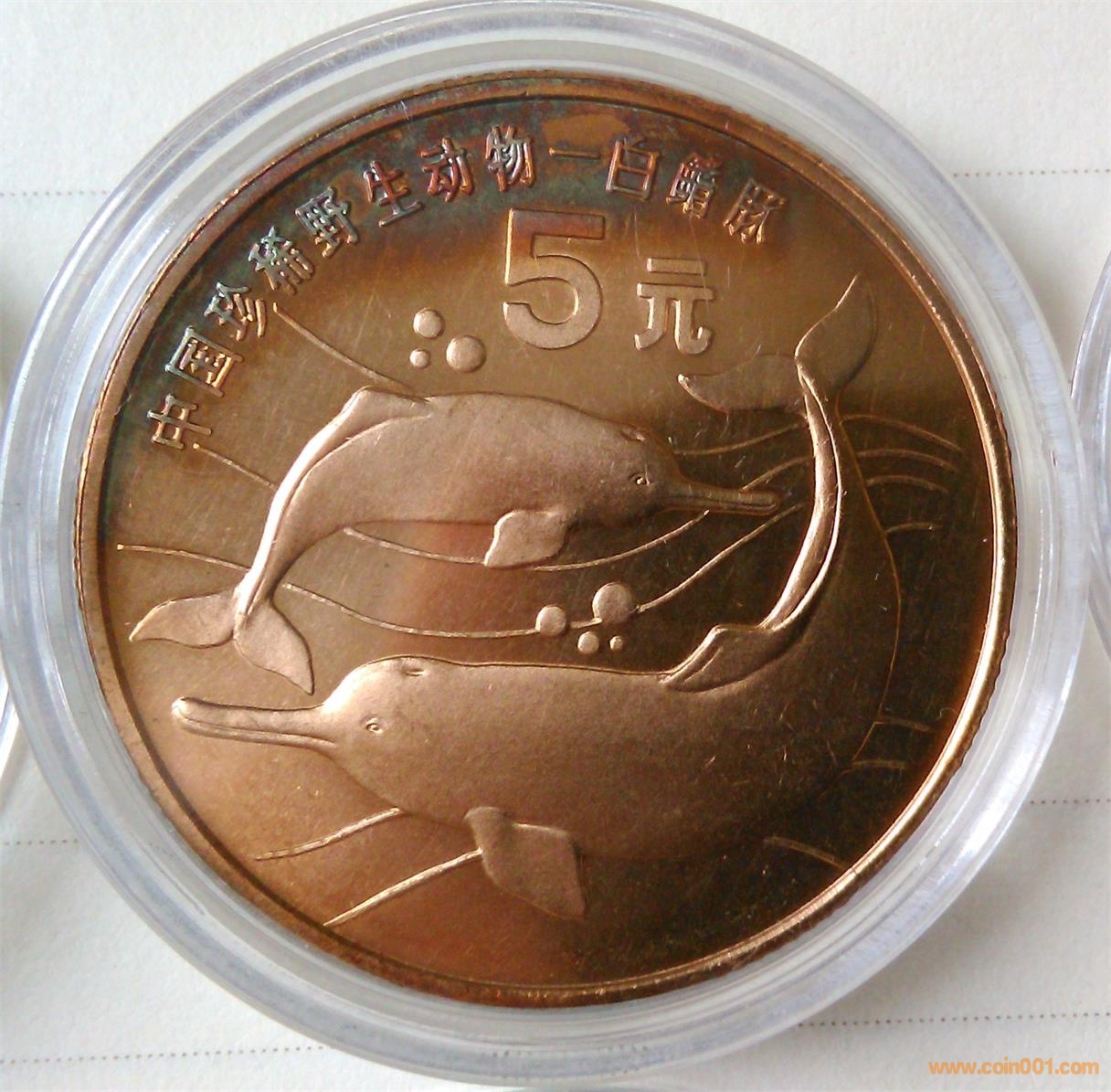 ——請看大圖白暨豚和揚子鱷,在幣名的位置(也就是氧化最嚴重的地方)有一塊不太自然的露白,其實是我取幣的時候也如田總一般懷疑僅是氧化而非包漿,所以用橡皮擦輕擦了一下,結(jié)果氧化物順勢去除;當(dāng)時先試了揚子鱷,覺得不可靠,又在更嚴重的白暨豚上試了,結(jié)果氧化物都輕擦可去,后來還更笨的將同冊的金黃大典全部的氧化物都擦去了。所以,經(jīng)此試驗,我敢保證幣的氧化全是包漿氧化。