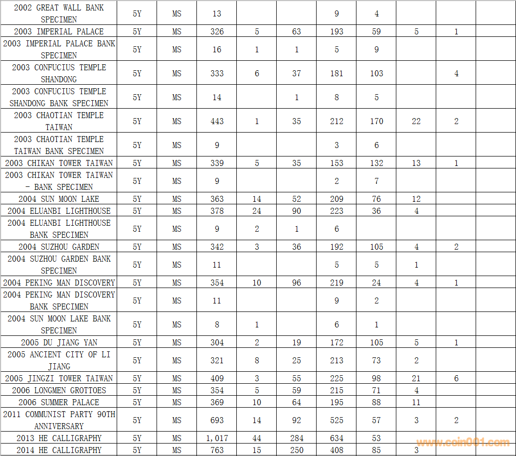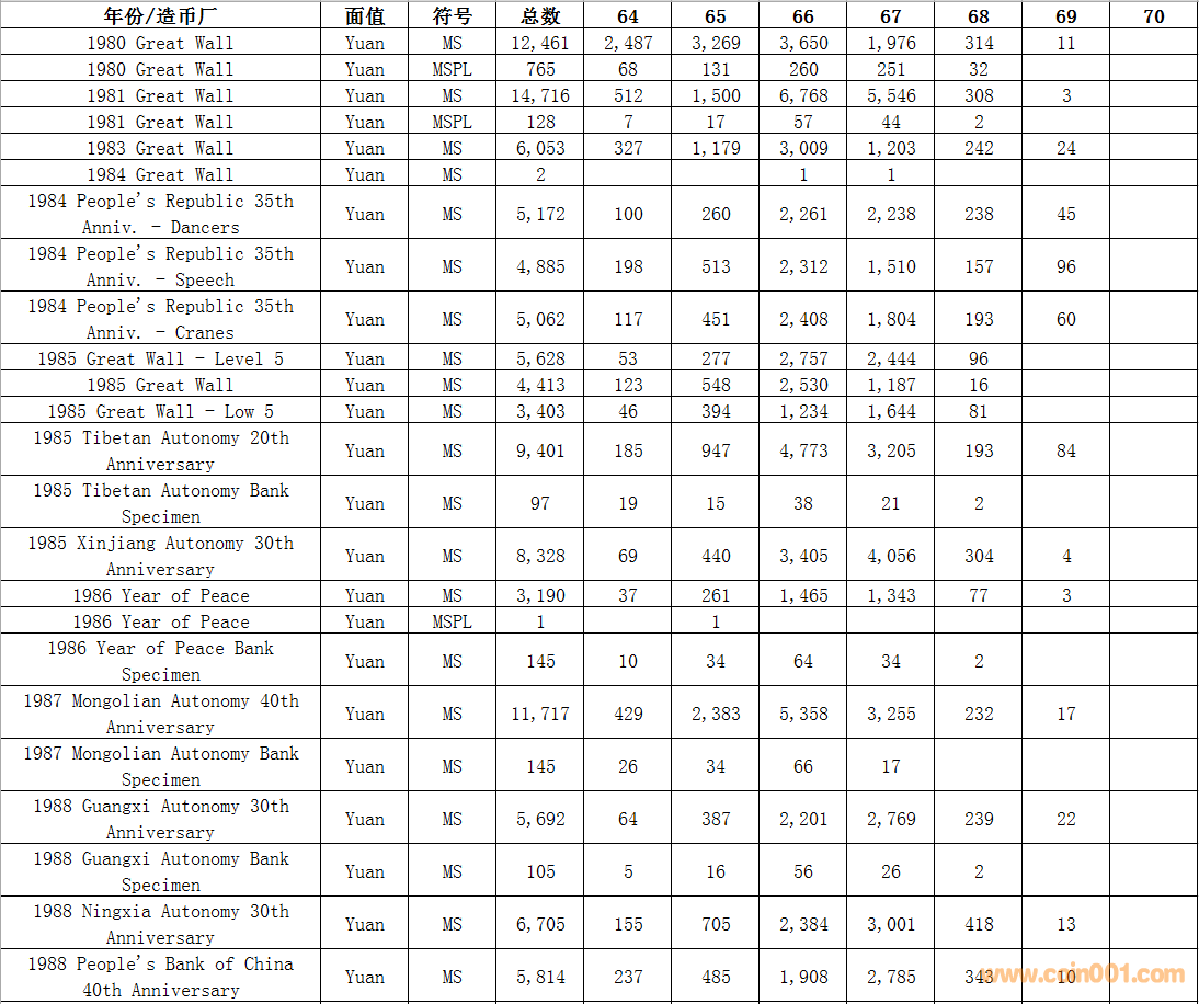 NGC硬幣評(píng)級(jí)數(shù)量報(bào)告 ..