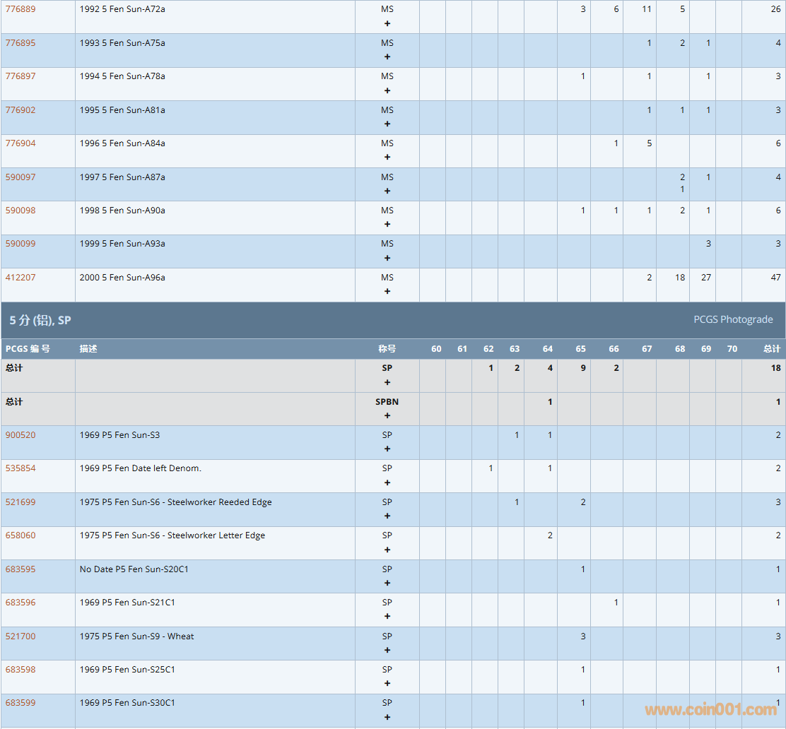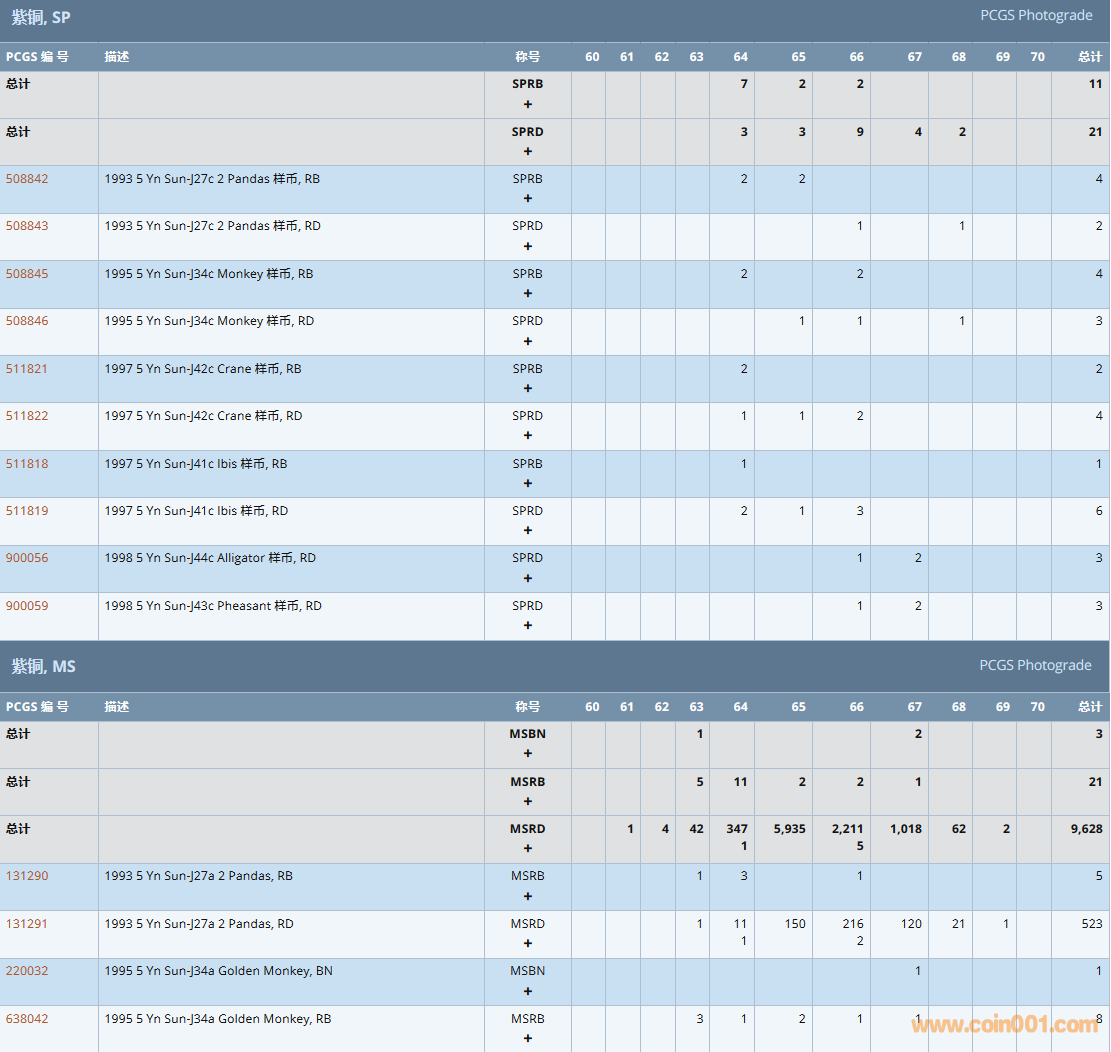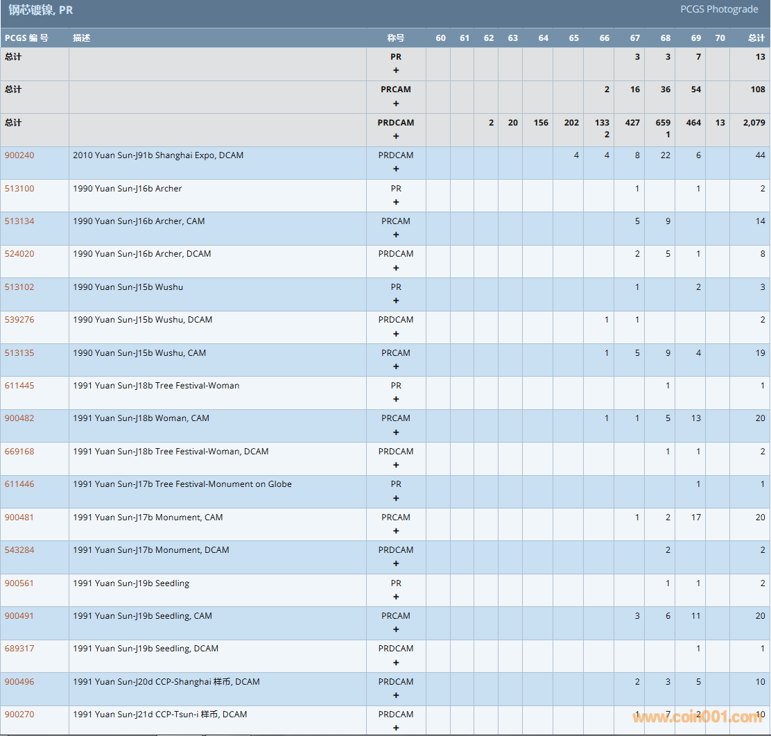 PCGS硬幣評級數(shù)量報告( ..