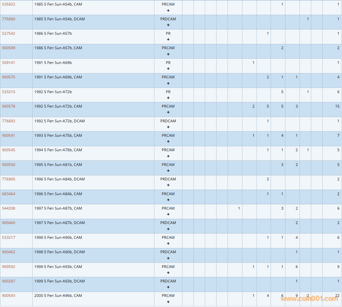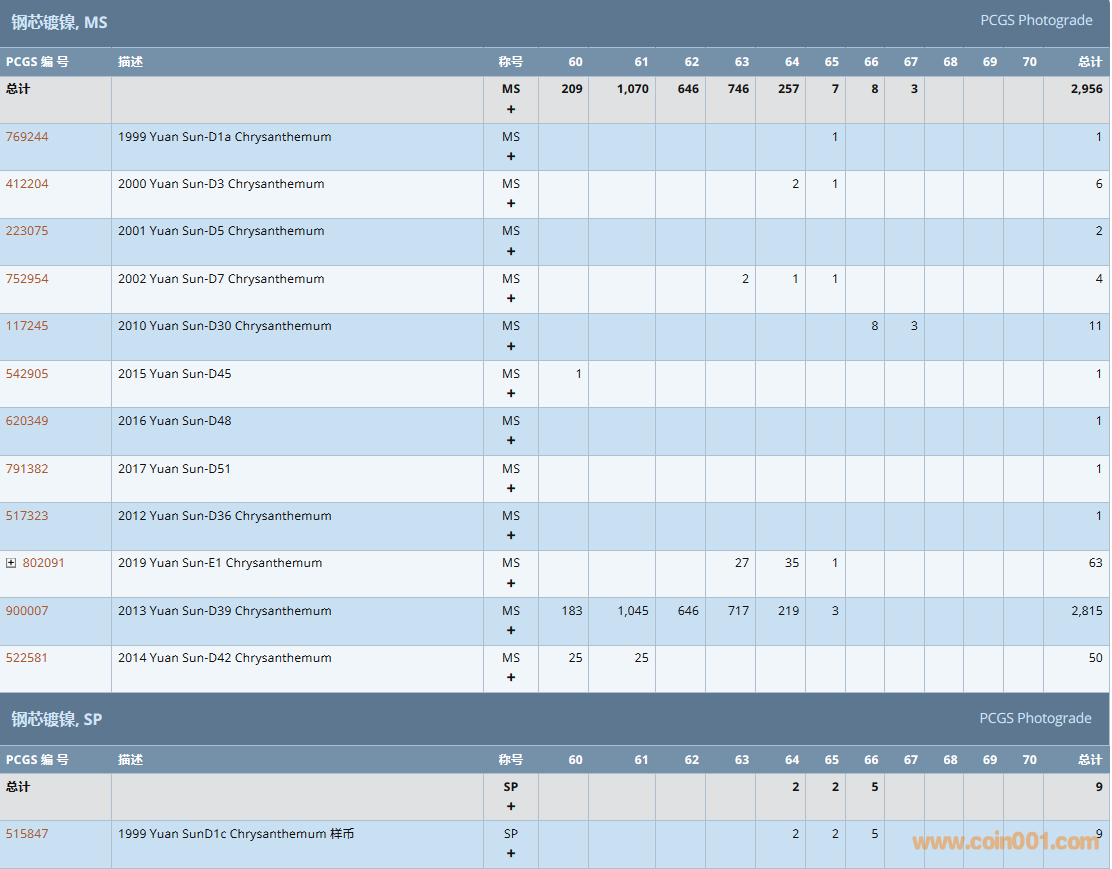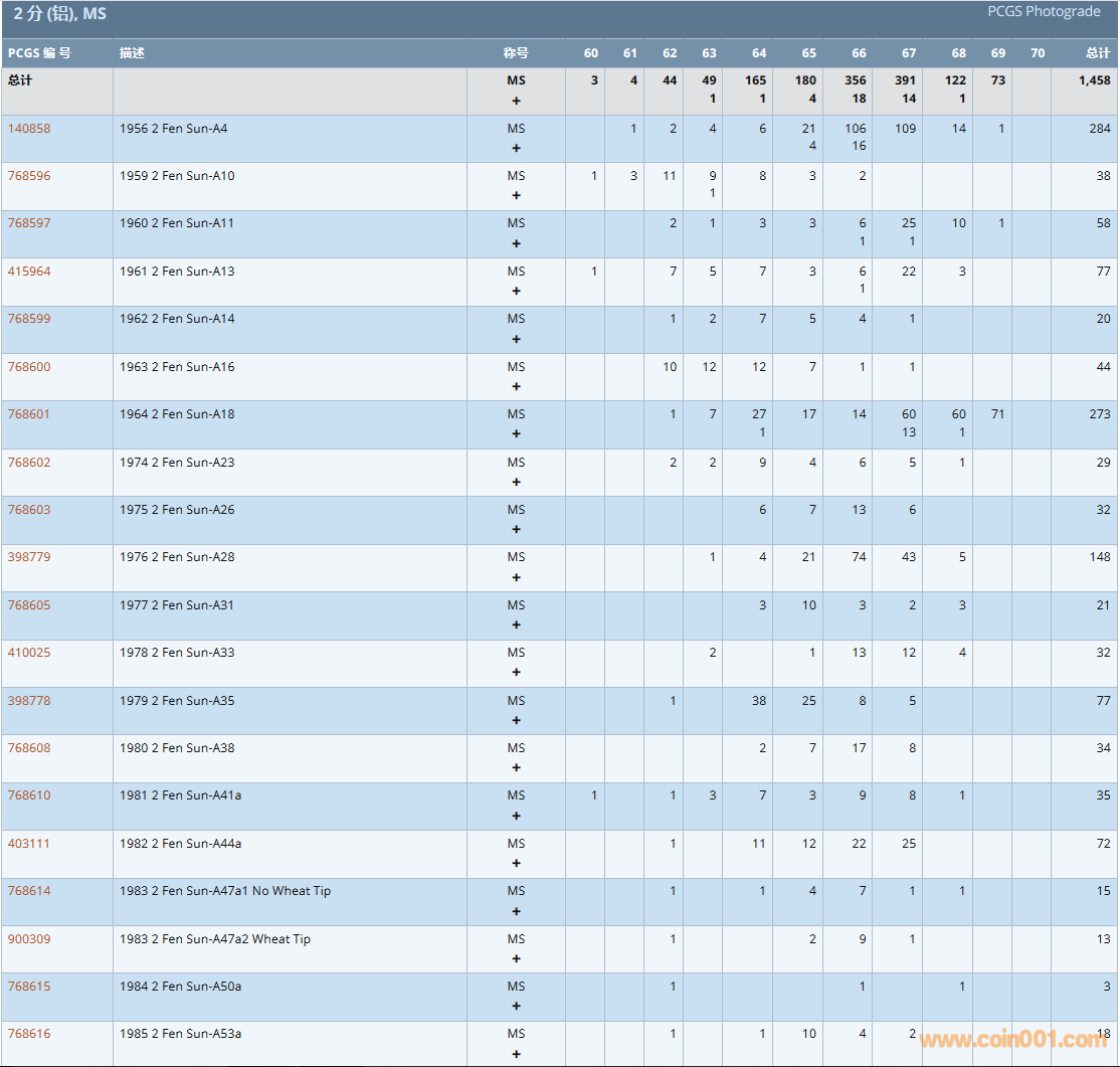 PCGS硬幣評級數(shù)量報告( ..