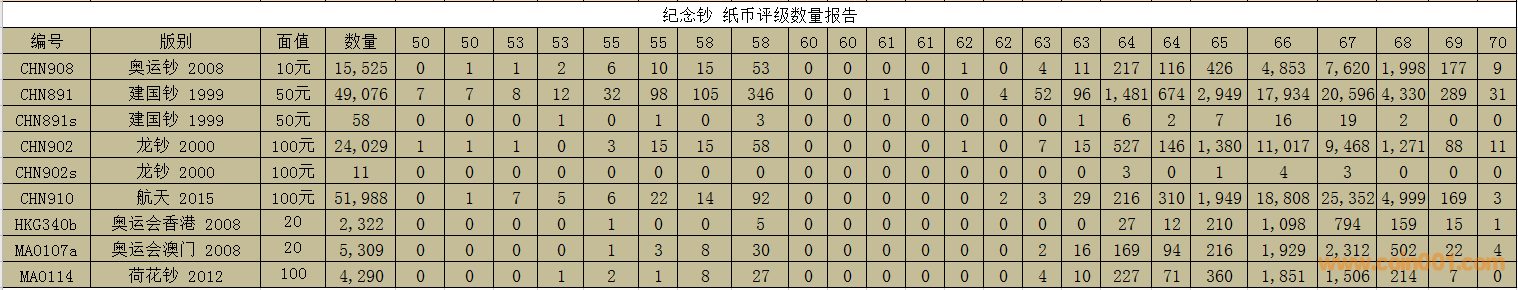 PMG紙幣評級數(shù)量報告 ..