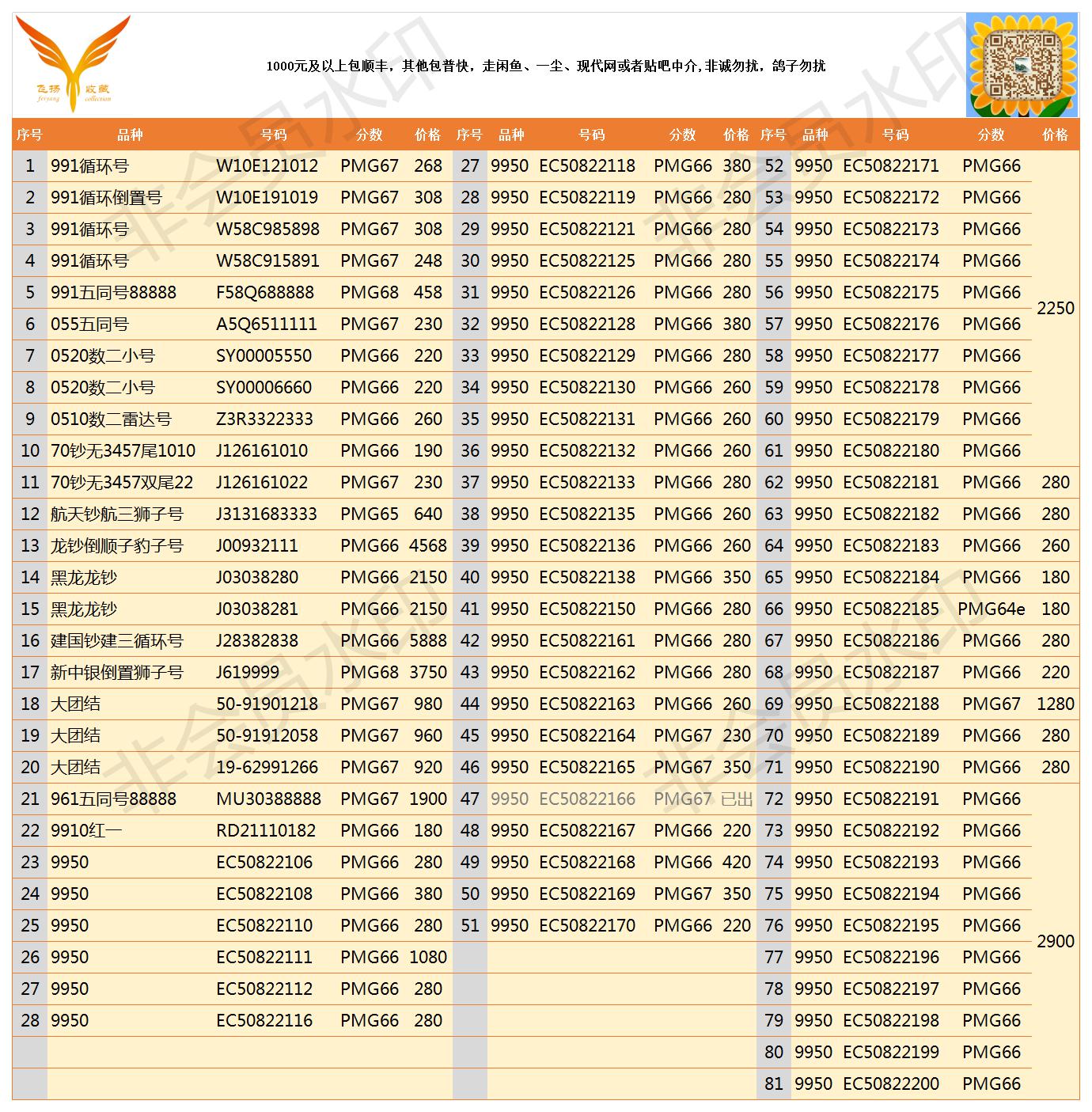 PMG評級紙幣靚號低價出