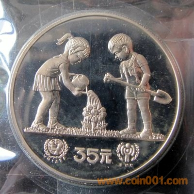 還有一枚國(guó)際兒童年-兒童澆花銀幣,但是工藝不是鏡面,而是噴砂。是一枚特殊的幣。是1988年鑄造的。