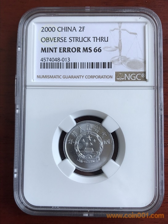 4、出2000年2分NGC MS66 評(píng)級(jí)錯(cuò)幣一枚,未公開(kāi)發(fā)行流通(天坑)。