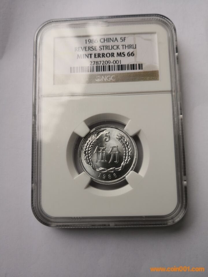 2、出1986年5分NGC MS66 評(píng)級(jí)錯(cuò)幣一枚(天坑)