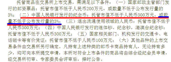 引用 引用第4樓程先生于2015-01-23 22:40發(fā)表的 : 要不市值達到300萬元以上,要不數(shù)量不低于公布發(fā)行量的3%,二者只要具備一個條件即可 我認為你理解錯了 .......