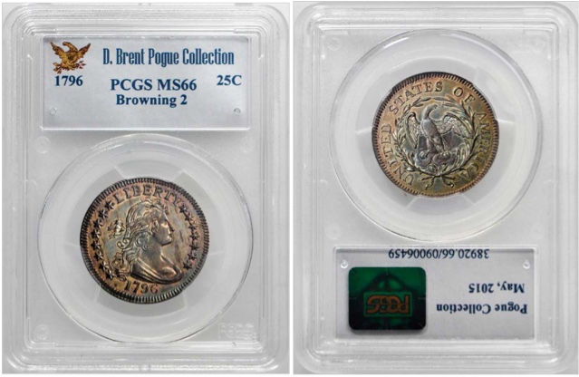 在5月19日,波格(D. Brent Pogue)集藏現(xiàn)身紐約SBP和蘇富比的聯(lián)合錢幣拍賣會(huì)現(xiàn)場(chǎng)。第一批拍品共128枚,皆為PCGS認(rèn)證和評(píng)級(jí),成交金額逾2500萬美元。以下為部分珍品: