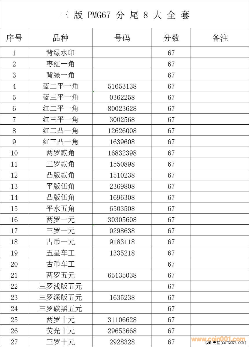 @@出售PMG67分無(wú)47尾號(hào)8、三版中套21枚@@