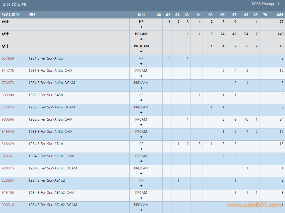 PCGS硬幣評(píng)級(jí)數(shù)量報(bào)告 ..