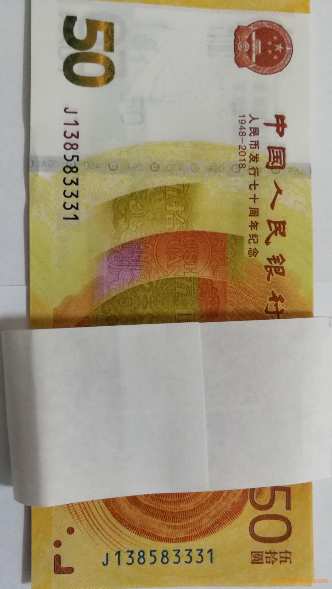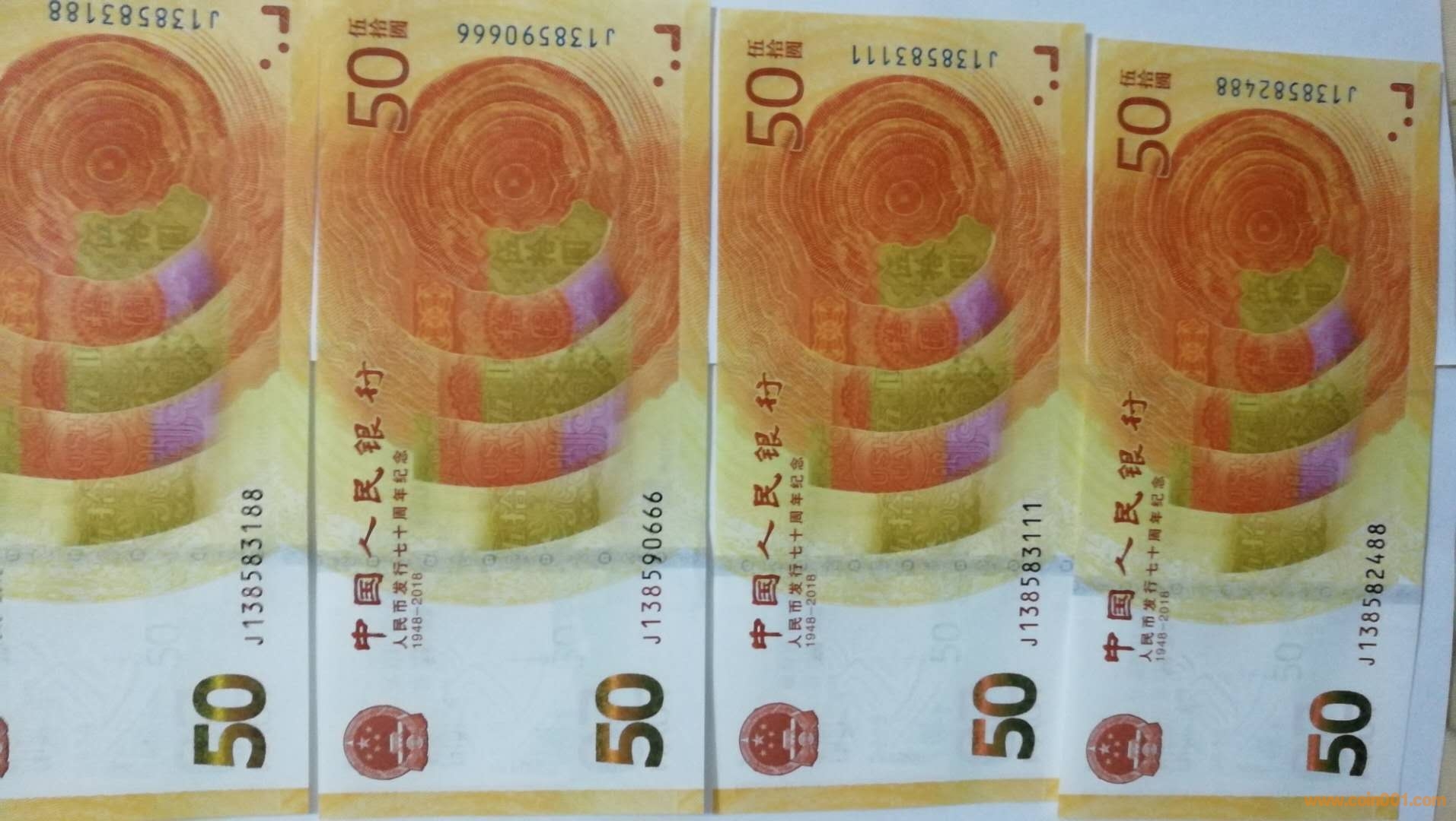 出一生發(fā)我發(fā)(13858)開頭無47連號70周年紀(jì)念鈔念鈔。標(biāo)十連:138583331—3340(有尾號3333),1200元;138582661—2670(有尾號666),900元;138582551—2560(有尾號555),800元;1385823381—3390(有尾號3388),800元;138582981—2990(有尾號988),700元;包郵。138590666,100元;138583111,90元;138583188,80元;138582488,60元。單張不包郵。