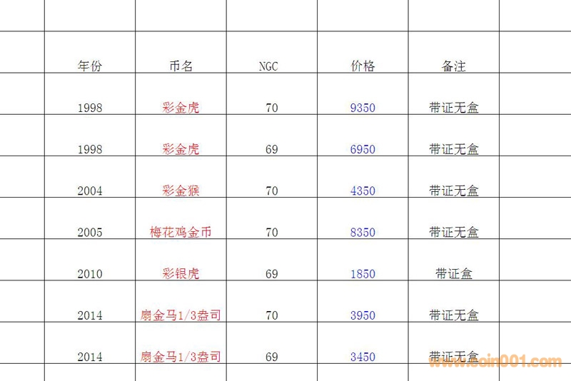 評級普通(精制)紀念幣交易