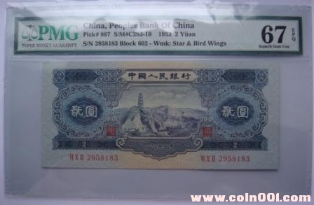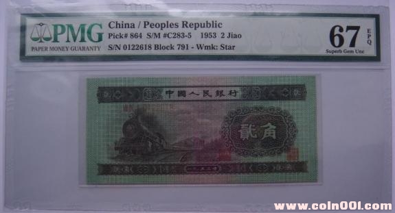 2角,俗稱(chēng)火車(chē)頭,發(fā)行時(shí)間:1955,3,1,1971年11月開(kāi)始銀行只收不付,停用時(shí)間:1999,1,1,規(guī)格:120*55