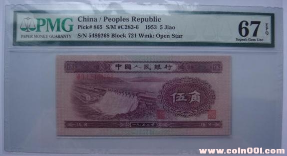 5角,俗稱(chēng)水壩,發(fā)行時(shí)間:1955,3,1,停用時(shí)間:1999,1,1,規(guī)格:125*57.5