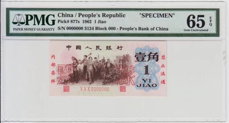 背綠一角票樣   ..