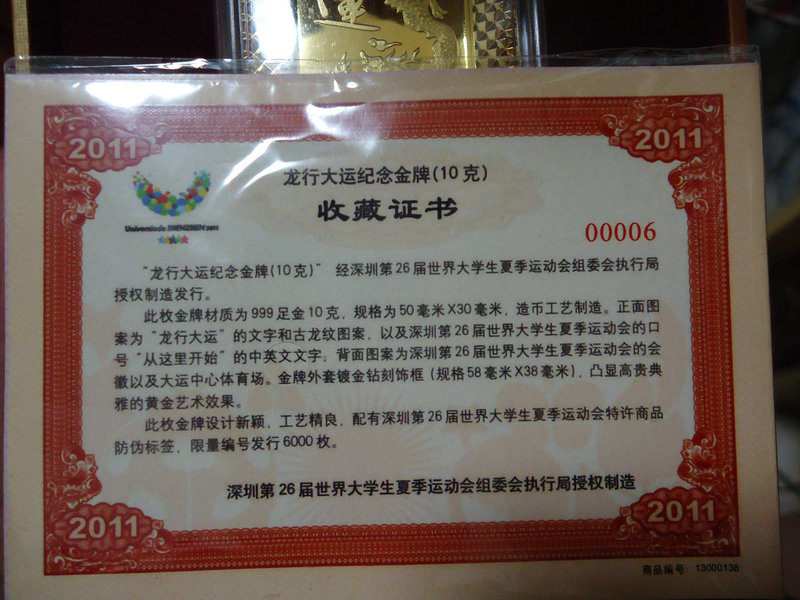 2011年大運(yùn)會(huì)金牌龍章 ..