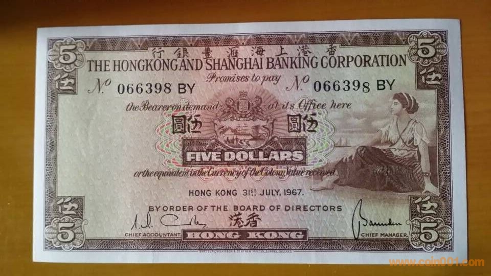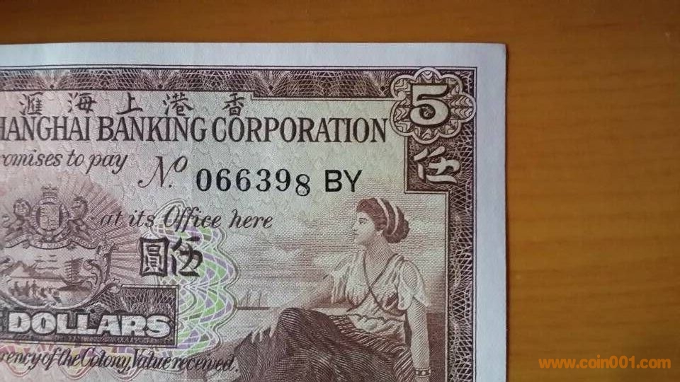 圖片:錯(cuò)幣。右邊最后一個(gè)號(hào)碼。向上移位。1967年匯豐伍元,066398BY,95品,封利是摺痕。1680-1880,上部分.jpg