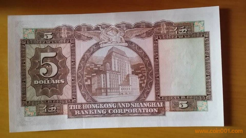 圖片:錯(cuò)幣。右邊最后一個(gè)號(hào)碼。向上移位。1967年匯豐五元。95品,封利是摺痕。1680-1880,背面.jpg