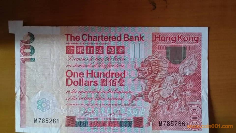 3)1980年,渣打100元【大福耳】,M785266,價(jià)格電聯(lián),9800元