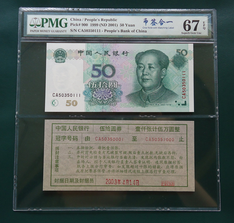 PMG 67分 9950 CA 50350111 幣簽和一 5000元