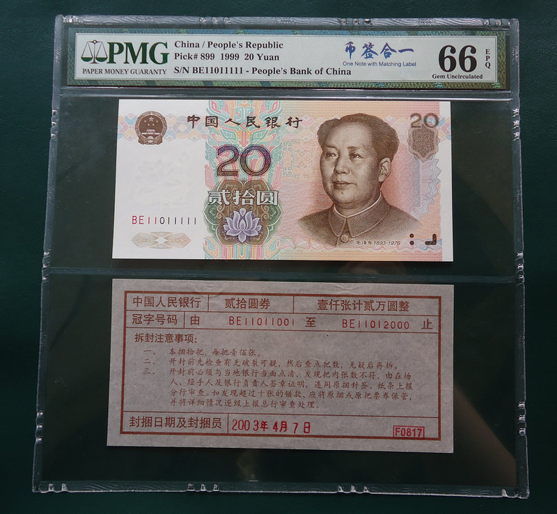 建國(guó)鈔 幣簽合一 PMG 66分 J35645555 惜售6800元!