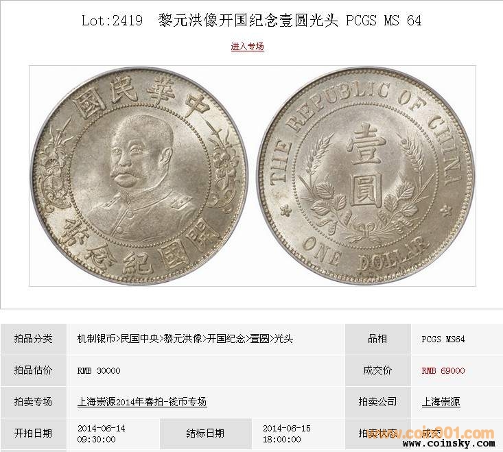 PCGS金盾 MS64 黎元洪 帶 ..