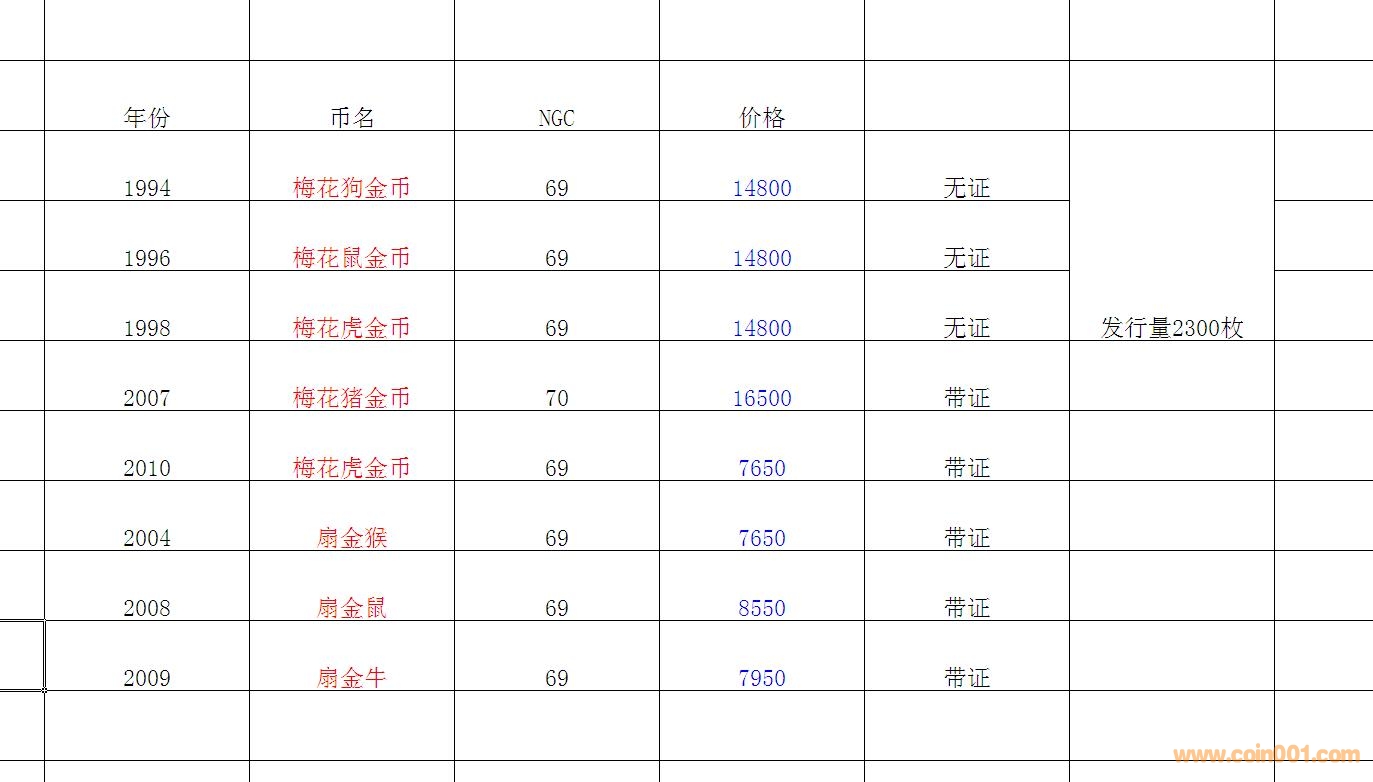 出;1994年梅花狗金幣 ..