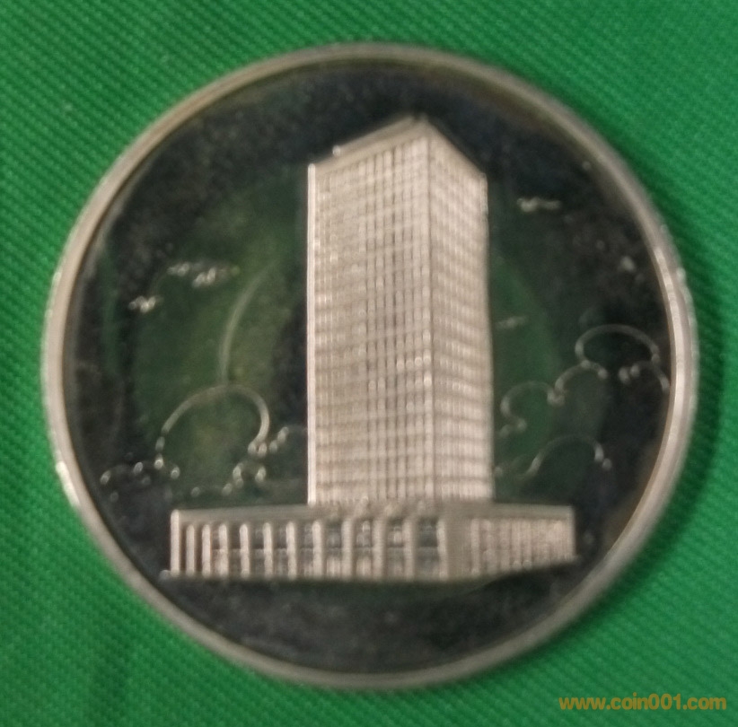 中國(guó)銀行成立70周年銀章。銀質(zhì),1/2 盎司。屬早期銀章。