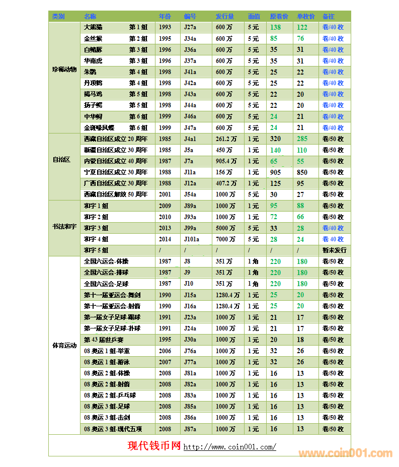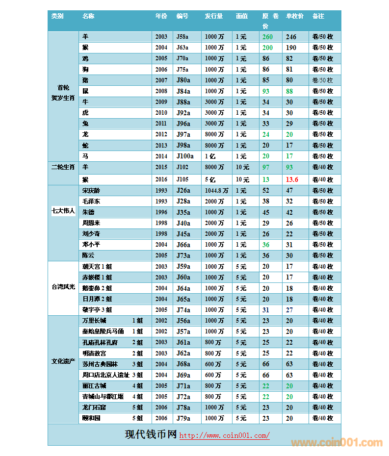 2016.8.15流通紀(jì)念幣報(bào)價(jià)