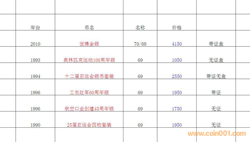 普通(精制)紀(jì)念幣交易