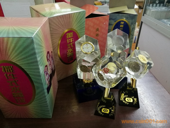 1,擺件式中國(guó)硬幣水晶球:老三花+分幣,看了一個(gè),1元是1997年,5角1996年,1角1994年,1分1991年,2,5分都是1987年,價(jià)格150元