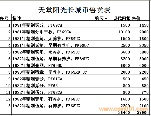 普通(精制)紀(jì)念幣交易