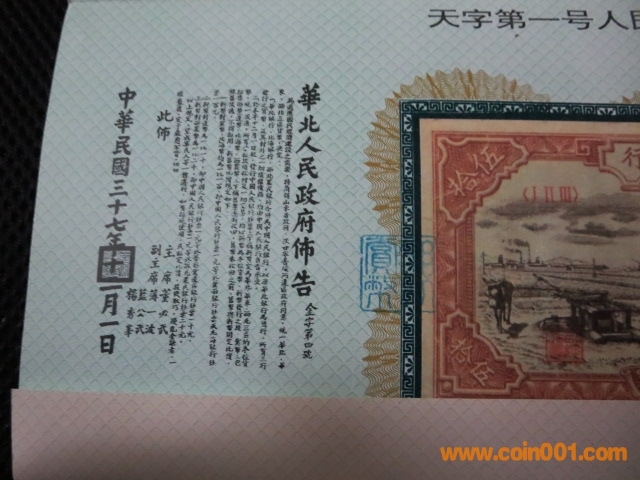 人民幣第一套第一張 ..