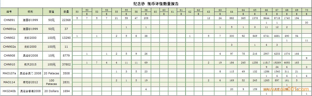 PMG紙幣評級數(shù)量報告 ..