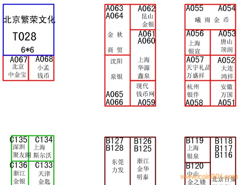 由于建行和工行參與今年的北京錢幣博覽會(huì)以及公安對消防的要求,組委會(huì)重新發(fā)布了參展商名錄及展位圖,新的名錄如下: