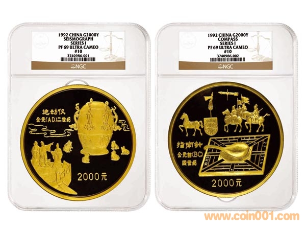 作為中國(guó)現(xiàn)代貴金屬幣推廣和拍賣領(lǐng)域的領(lǐng)跑者,愛(ài)秀集團(tuán)下屬公司香港冠軍拍賣很幸運(yùn)地與“古科”地動(dòng)儀和指南針公斤金幣結(jié)下不解之緣。2011年6月,愛(ài)秀集團(tuán)將6號(hào)指南針、8號(hào)指南針和地動(dòng)儀送到美國(guó)第三方錢幣評(píng)級(jí)機(jī)構(gòu)NGC評(píng)級(jí)。其中, 6號(hào)指南針公斤金幣評(píng)分NGC PF69,8號(hào)指南針和地動(dòng)儀分別獲得PF69和PF68的高分。 2011年8月,6號(hào)指南針公斤金幣以129.8萬(wàn)美元(約合830萬(wàn)人民幣)的高價(jià)拍出,創(chuàng)下單枚公斤金幣的世界最高拍賣紀(jì)錄。而將于今年12月18日冠軍拍賣會(huì)上亮相的10號(hào)公斤金幣指南針和地動(dòng)儀將成對(duì)拍賣,也是唯一雙雙達(dá)到NGC PF-69的公斤金套幣。其中,與其他金幣編號(hào)鑄在底部不同,地動(dòng)儀編號(hào)數(shù)字10因鑄在頂部更具特色。