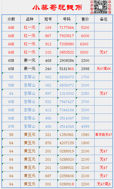 66E無47紅一元,黃五元 ..