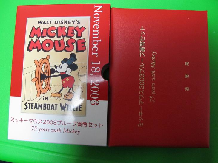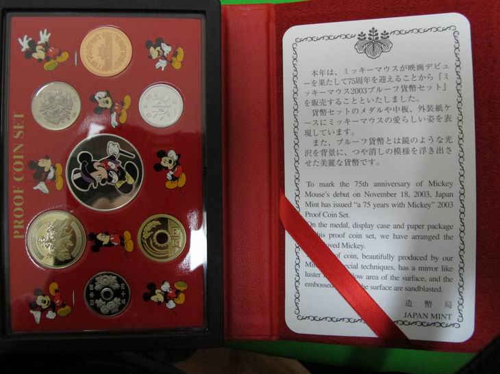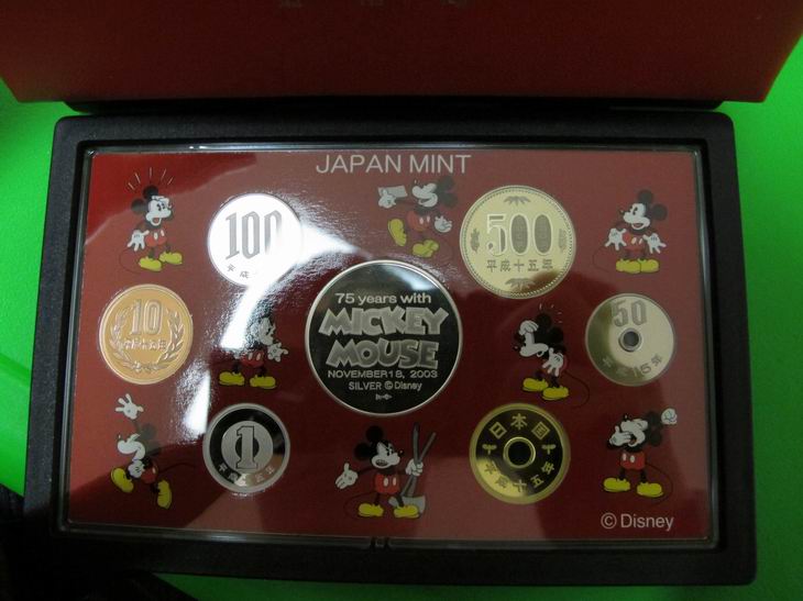 5、2003年米奇誕生75周年紀(jì)念版日本精制套幣(帶1盎司925銀章)                       價(jià):600元/套(僅有一套)