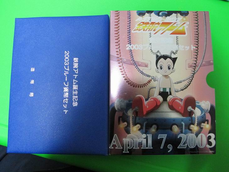 6、2003年鐵臂阿童木誕生紀(jì)念版日本精制套幣(帶1盎司925銀章)                       價(jià):600元/套(僅有一套)
