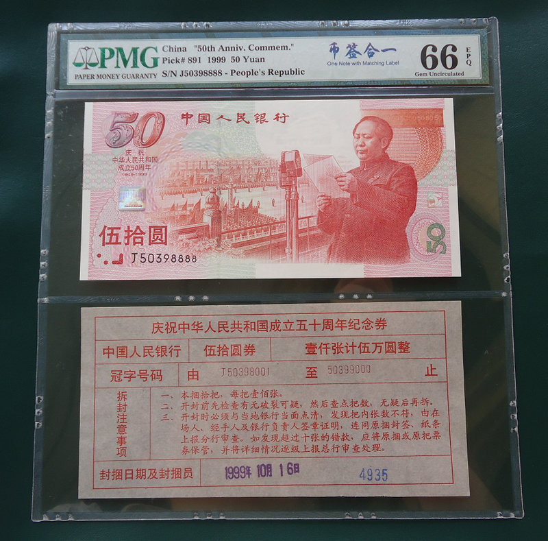 建國鈔 幣簽合一 PMG 66分 J55852222 建三 只有258 我兒發(fā)的組合 惜售16800元!