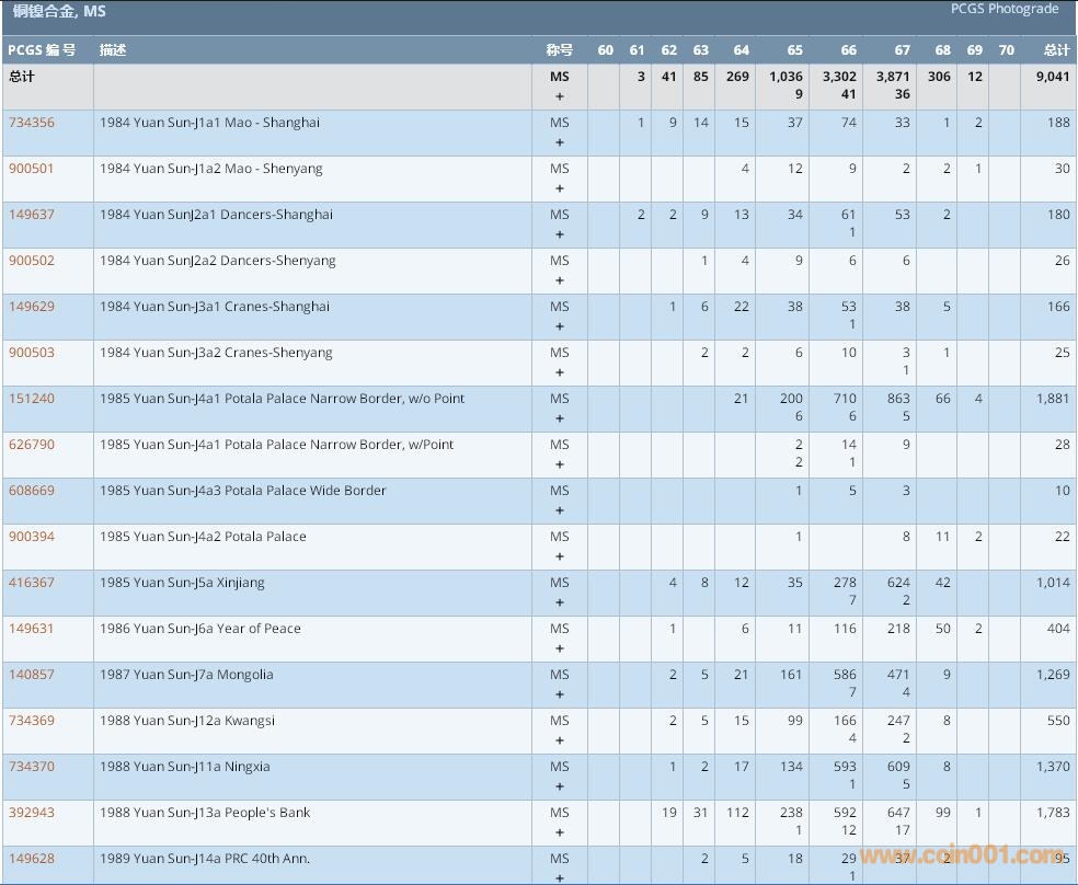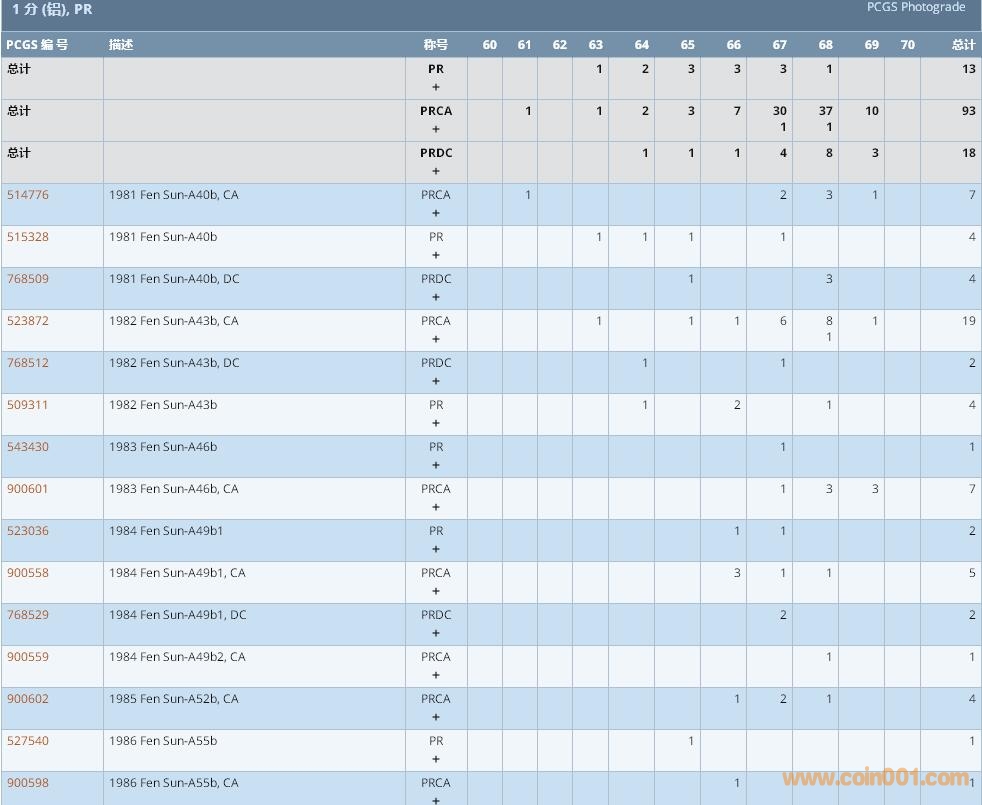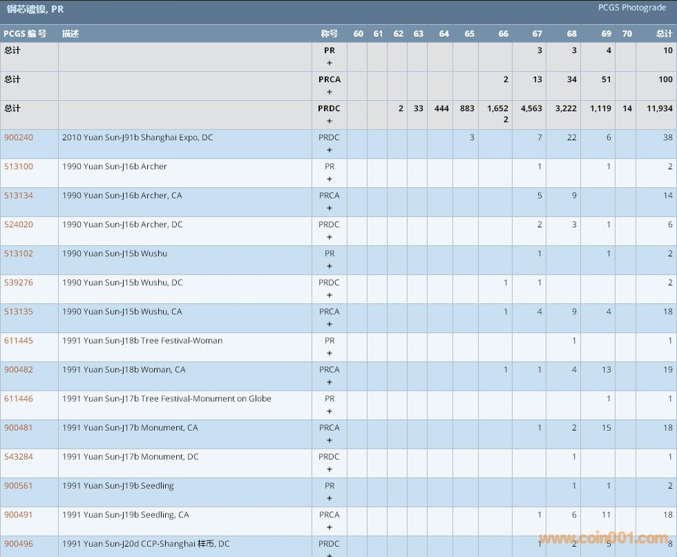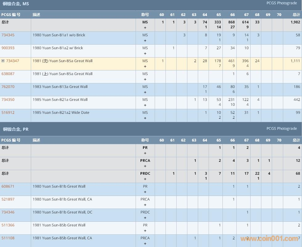 PCGS硬幣評(píng)級(jí)數(shù)量報(bào)告 ..