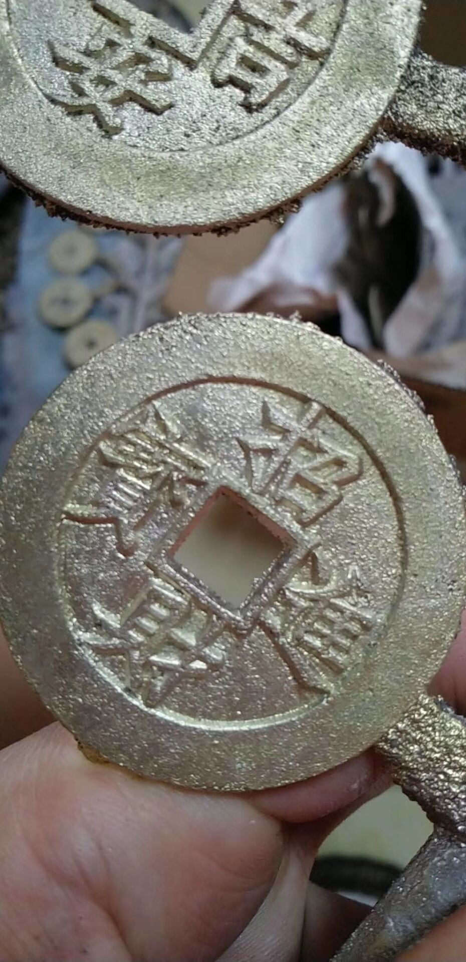 現(xiàn)代古法翻砂工藝品金錢樹,工藝到位制作考究,鑄造這批藝術(shù)品的老藝人祖輩七代為鑄造古幣工匠藝人,第五代曾被調(diào)入宮中做帶班頭領(lǐng)官位緊次于小德張,此次老藝人重出江湖按失傳多年的古法加配老銅鑄造一批金錢樹供大家藏玩,因古法難度較大所以出成率極低,現(xiàn)特供朋友圈十束!每樹僅需288元!低仿花錢30一個也買不到,原生態(tài)未打磨,即可以回去打磨按個把玩又可以整體藏玩是不可多得又價格低廉名家鑄造的不二藝術(shù)珍品?。ㄒ蛉肥止ご蛟旃艓盼恢貌豢赡苈杂胁煌?