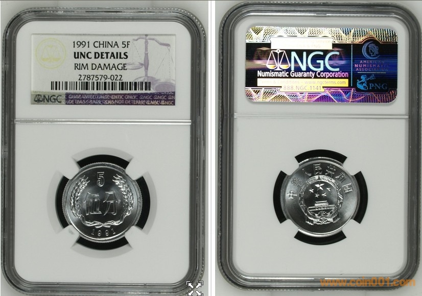 NGC會(huì)對表面狀況(品相)存在問題(瑕疵)的錢幣進(jìn)行“DetailsGrading”評級(jí)封裝,此類錢幣將被封裝在紫色的固定器內(nèi),標(biāo)簽上會(huì)注明表面狀況的描述以及與錢幣磨損程度相應(yīng)的等級(jí),部分描述中文解譯如下: