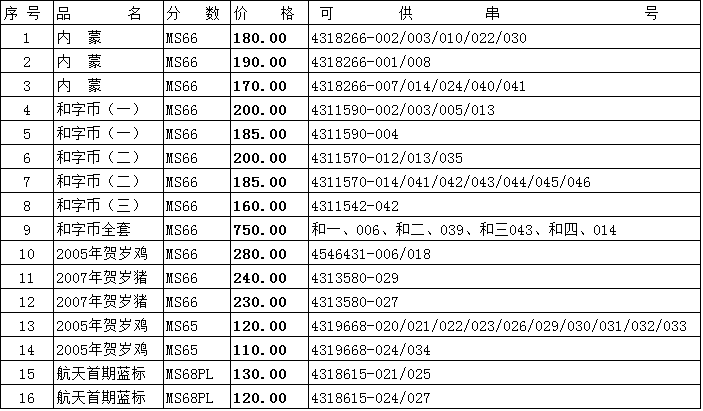 評級普通(精制)紀念幣交易