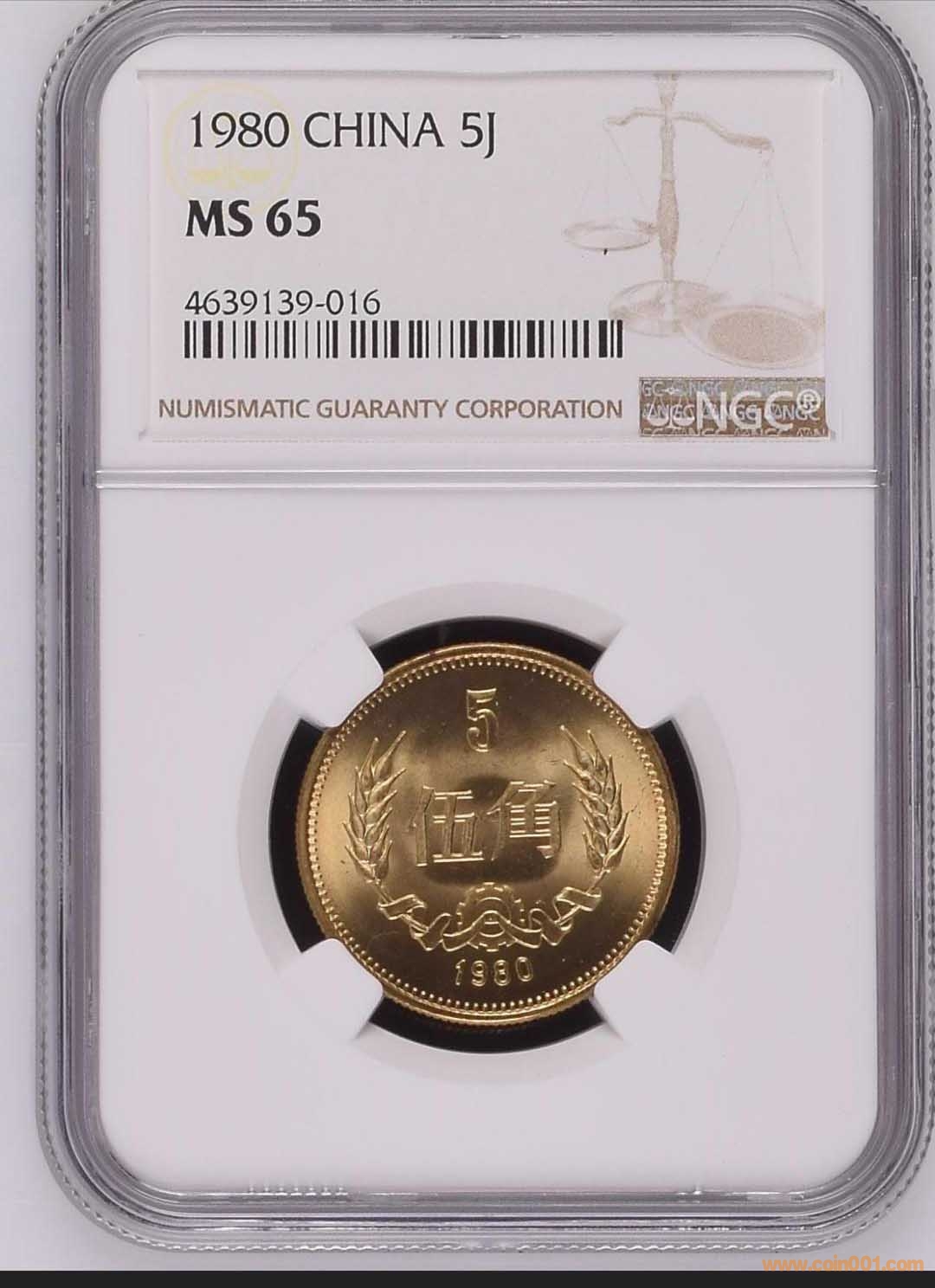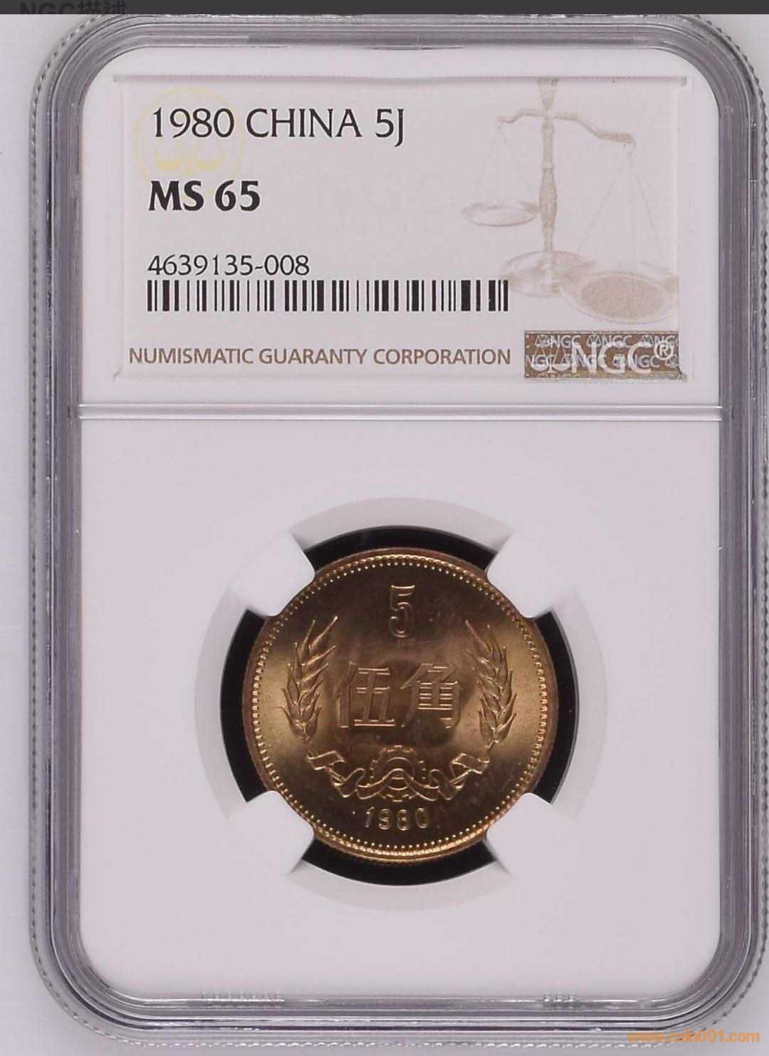 出NGC MS65分1980伍角!